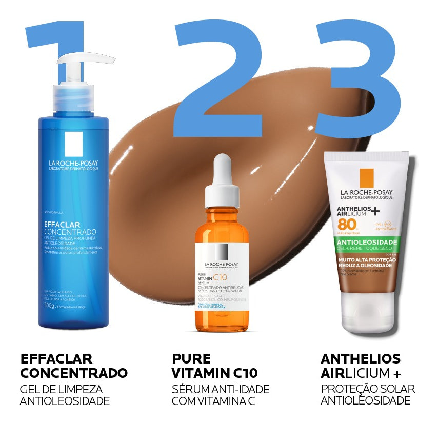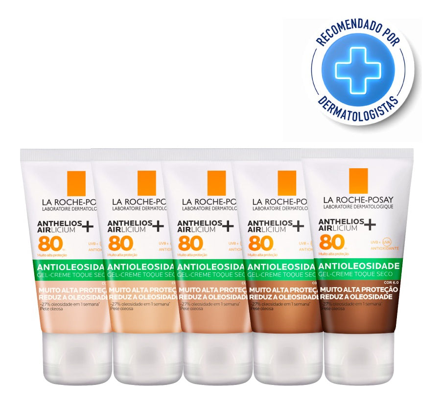 Protetor solar facial com cor. La Roche-Posay Anthelios Airlicium FPS80 protege e oferece um tratamento que reduz a oleosidade em 27% em apenas uma semana e 56% em um mês.