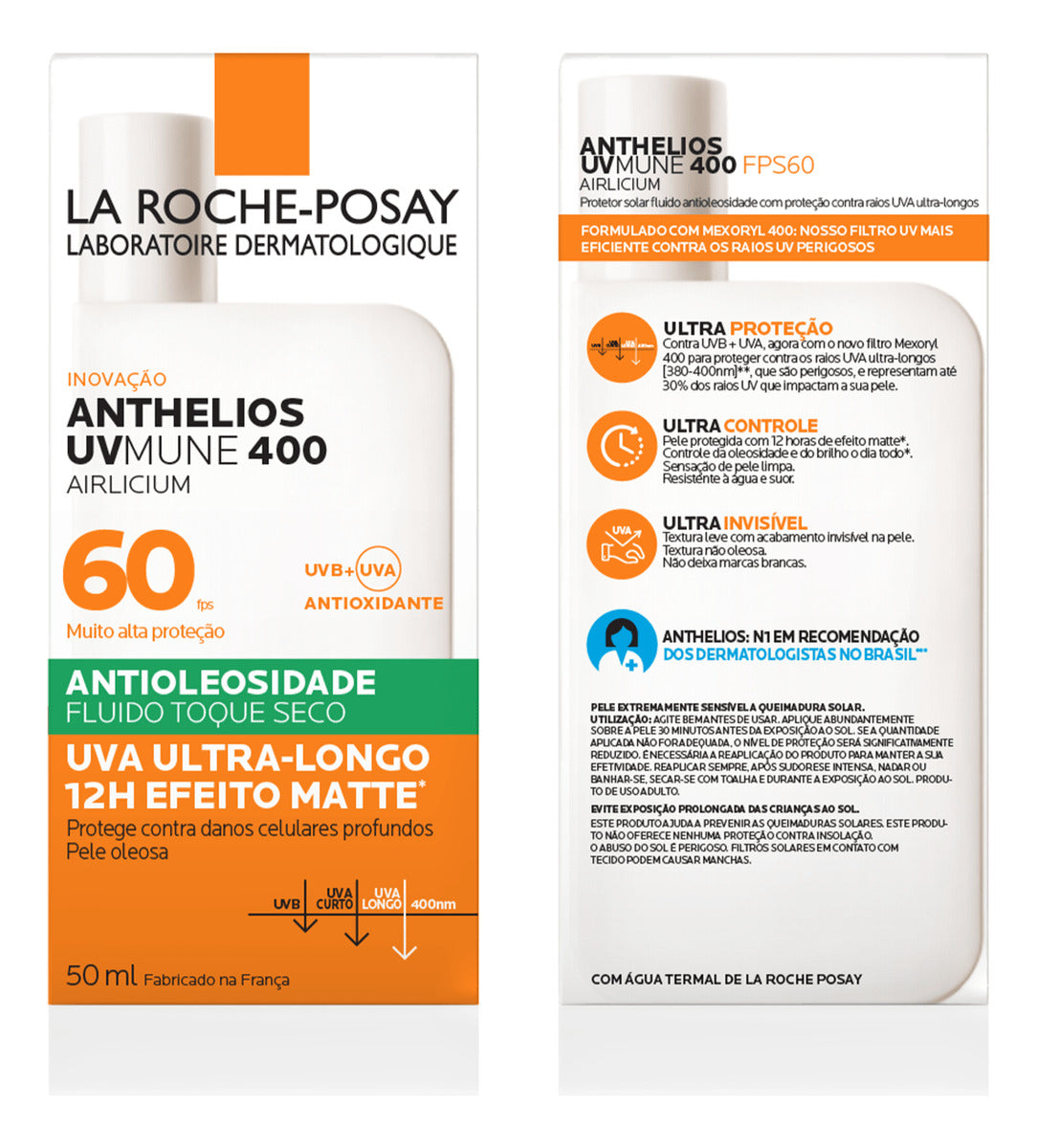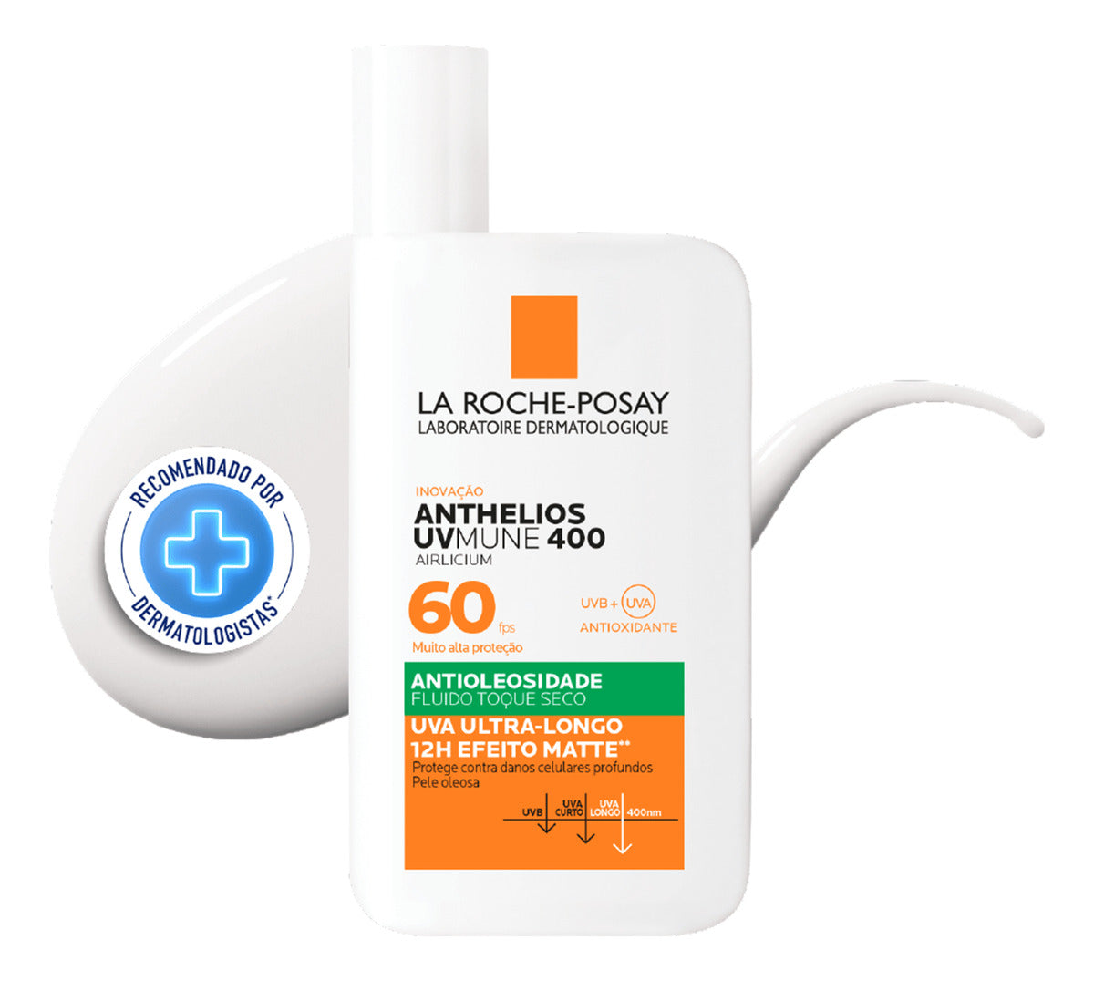 Protetor solar facial. La Roche-Posay Anthelios Airlicium Fluido FPS 50 oferece cuidado diário para a pele e ação antioleosidade.