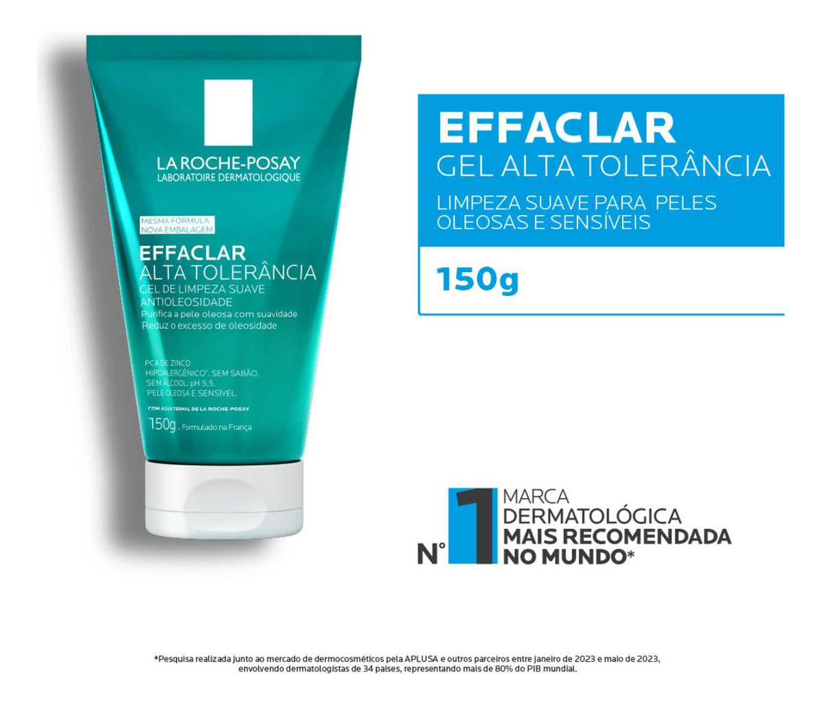 Gel de Limpeza La Roche-Posay Effaclar Alta Tolerância previne a formação de cravos e espinhas, desobstrui os poros e deixa a pele macia e fresca após a limpeza. Tudo isso sem deixar aquela sensação de repuxamento ou ressecar o rosto.